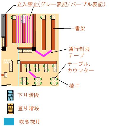 休館日の図書館の館内に書架を利用して迷路エリアを設定し、複数の階層を階段で行き来するコースを設定します。普段は入れない閉架書庫などにも入れます。