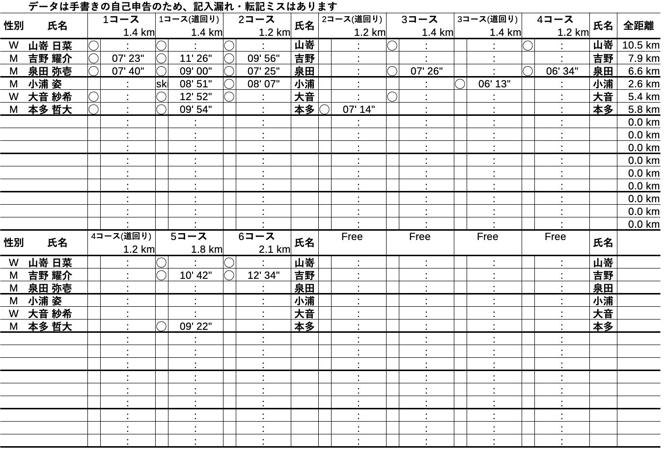 | クラス名 | チーム(組)ごと参加費 |