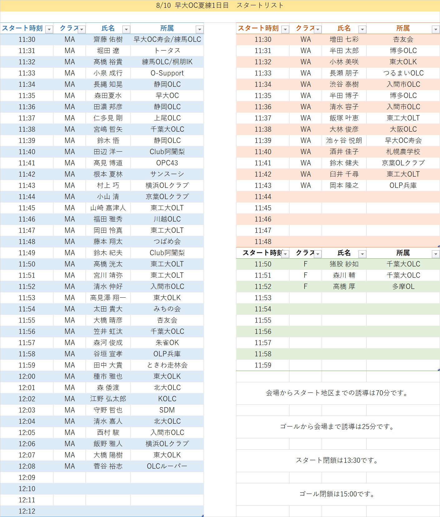 | 正式名 | 早大OC夏の練習会 1日目 |