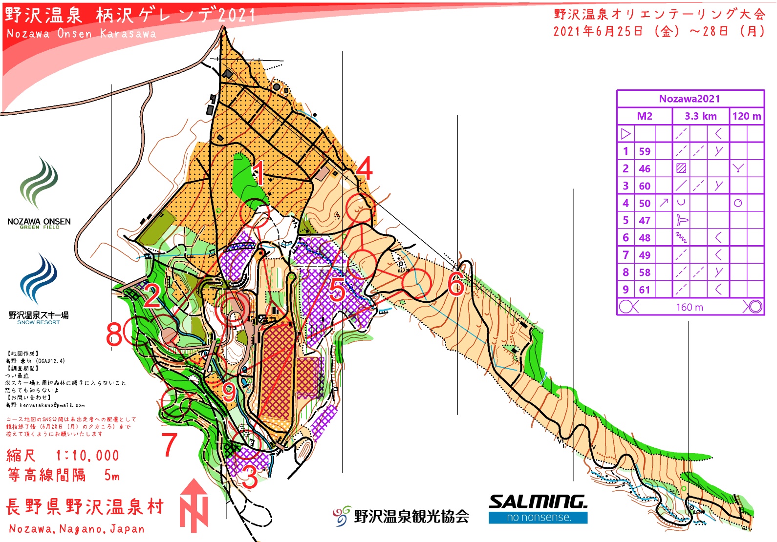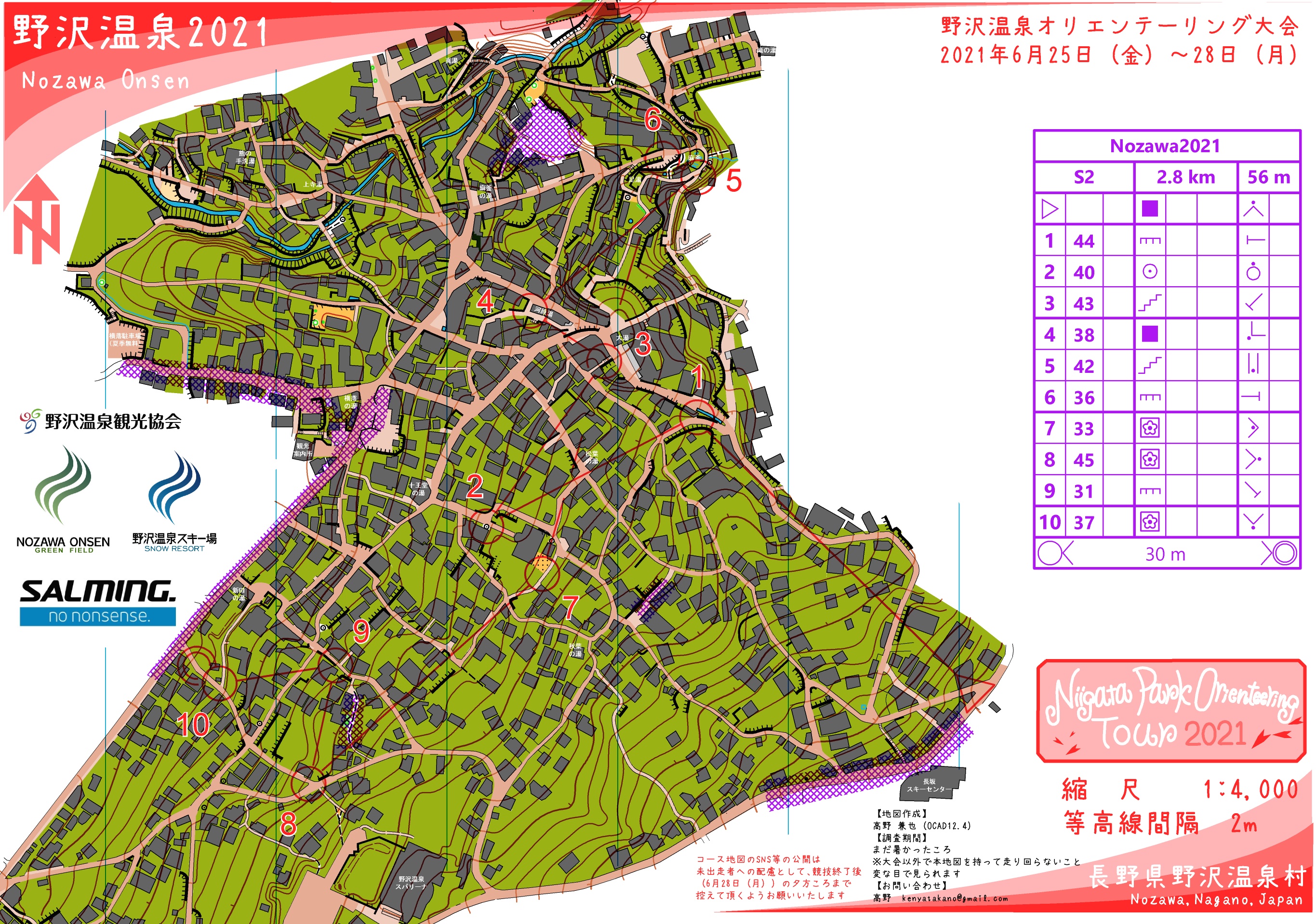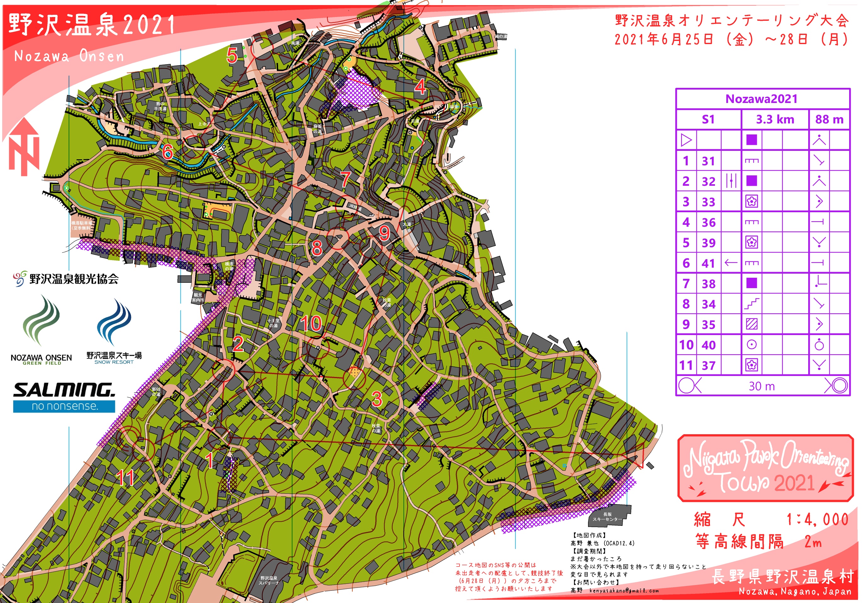 | 野沢温泉でオリエンテーリング大会を開催します。 スキー場ミドルと温泉街スプリントです。 海外みたいな本格的スプリントを楽しめます。ミドルもスキー場と周辺のクロカンコースを使ったルートチョイスが楽しめるコースです。ぜひお越しください 2021/6/26 プログラムにはS1を先に出走とありますが、M1とM2はS1より先に走ってもよよいこととさせていただきます。 空いた時間など有効にご活用ください。 2021/6/19 チェックリスト及びGoogleFormを公開しました。 チェックリストの場合は受付に当日、GoogleFormの場合は参加日1日前までにご記入し送信してください。 2021/6/18 プログラム・スタートリスト公開しました。 -------------- <大会情報> 最新情報 Twitter Twitter 写真とか Facebook「オリエンテーリング情報サイト」 Facebook |