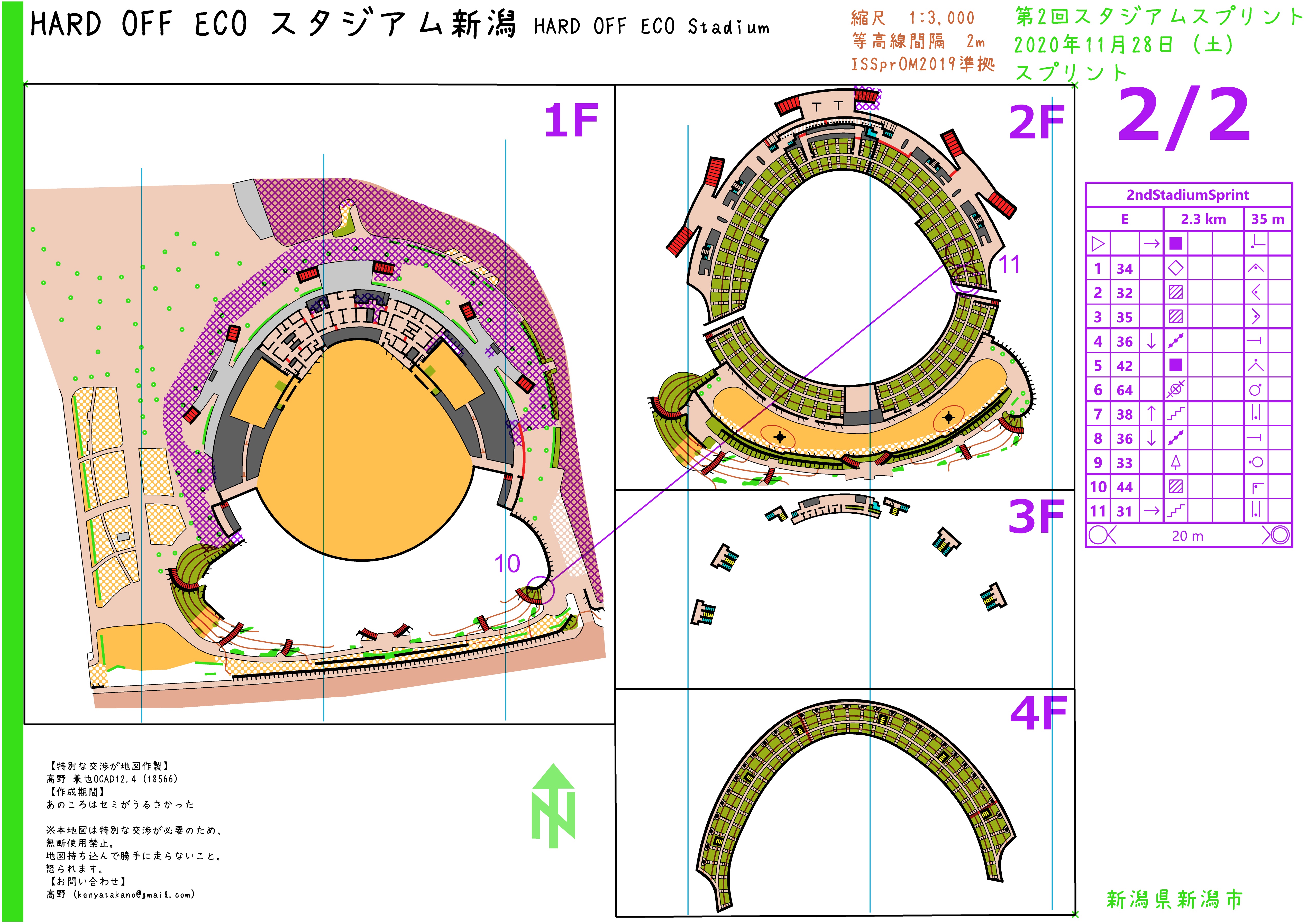 | 2021/8/10 スタートリストにASクラス追加しました。 2021/8/9 スタートリスト修正しました。時刻の変更はありません。 2021/8/3 たくさんのお申し込みありがとうございます。 以降の申込内容の変更と申込遅れは原則当日ご案内させていただきます。 2021/7/26 募集要項更新 <主な変更点> ・新潟でのスタジアムスプリントは今年で最後といたします。 ビッグスワンスタジアムとエコスタジアムはしばらくお休みです。 来年場所変えて開催するかどうかは未定です。 ・大会会場で物販する際は事前にお知らせください。 ・スタジアム貸し切り料金支払いのため、参加人数が少ない場合は中止する可能性があります。その際はもちろん返金いたします。 ・プログラムで公示する新型コロナウイルス感染症対策を必ず遵守してください。基本的にJOAのガイドラインに従います。 今年もスタジアムスプリント開催です。 実は今回の2回目開催のために前回使用しなかったエリアがあります。 今回で全エリア開放するので、 新のデンカビッグスワンスタジアムを見ることが出来ます。 また、毎度おなじみ難解レッグもそろそろ対処されやすくなってきた感じがして悔しいので、ちょっと本気だします。スプリントだと思わない方が良いかも ぜひお越しください! (8/14前後にも大会開催予定です。夏のお盆は新潟でどうぞ!) 前回・ハードオフエコスタジアム(2021/11/28)第2回スタジアムスプリント【スプリント】 前々回・デンカビッグスワンスタジアム(2021/8/18)第1回スタジアムスプリント【午前】 -------------- <このような大会もいかがですか?> 2021/8/15 新潟県「津川カントリークラブ」 新潟パークOツアー2021たぶん第3戦 2021/8/16 新潟県「サントピアワールド」 新潟パークOツアー2021たぶん第4戦 -------------- <大会情報> 最新情報 Twitter Twitter 写真とか Facebook「オリエンテーリング情報サイト」 Facebook |